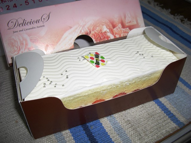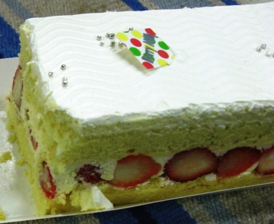 似乎是比較少見夾層塞滿草莓的的長條蛋糕